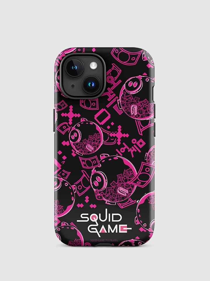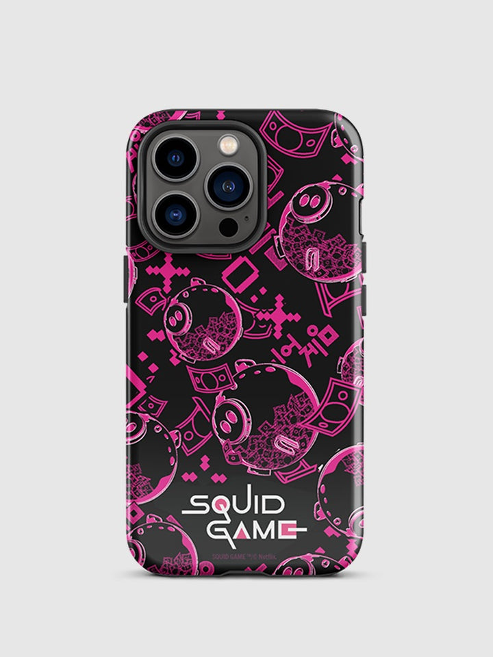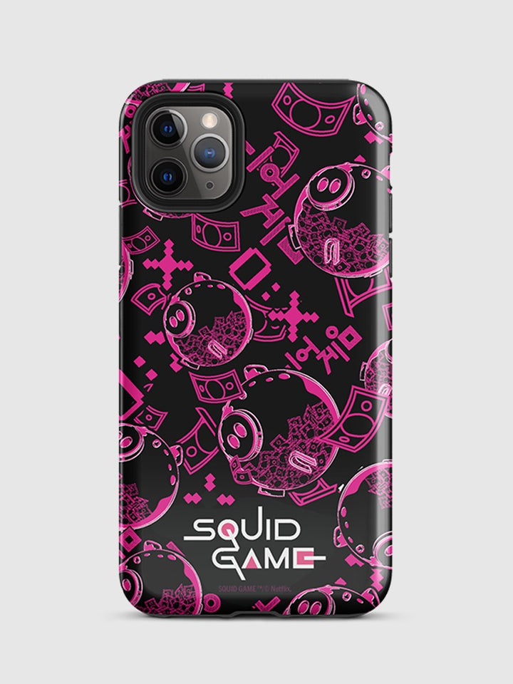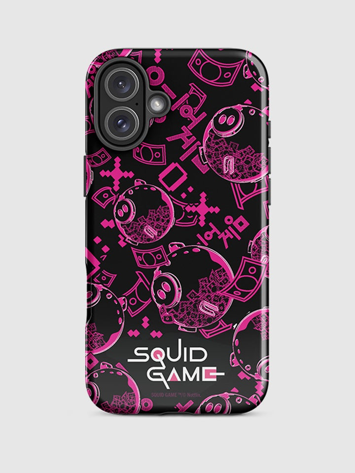 Add an extra layer of protection and drama to your iPhone with the Squid Game Piggybank Pattern iPhone Tough Case, inspired by one of the most memorable symbols from the series. This case features the striking and iconic image of the Squid Game piggy bank, a chilling reminder of the show’s dark stakes and the high price of survival.